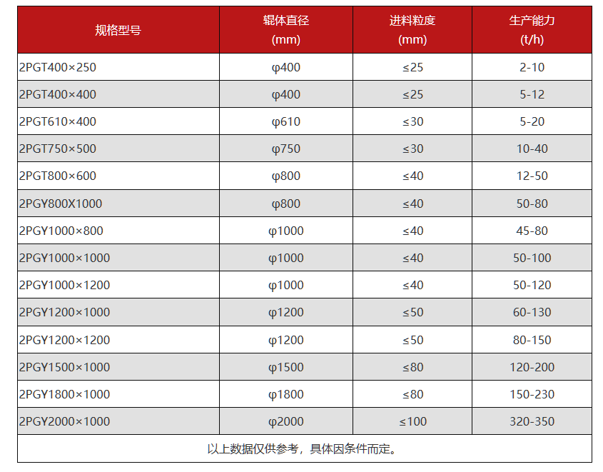 2、750×500,800×600,800×800,1000×800,時產20-50噸,屬于中型對輥破碎機。